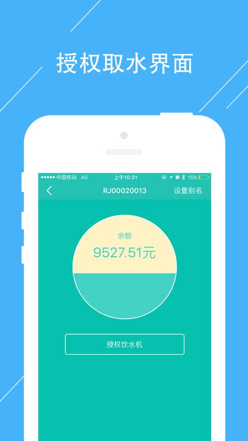通过手机蓝牙与饮水设备连接,准确出水,消费金额透明公正,个人消费清晰明了,记录方便可查;