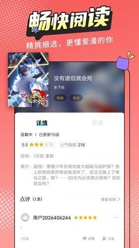 是喜欢看漫画的小伙伴们必备的免费看漫画神器,各种精彩的漫画都有,全部免费阅读,内置超多优质的漫画资源,不同类型的漫画都能找到,满足多样化的观看需要。资源超级的丰富,不断更新漫画作品,还能够为你推荐一些高人气的漫画,让你看过瘾。