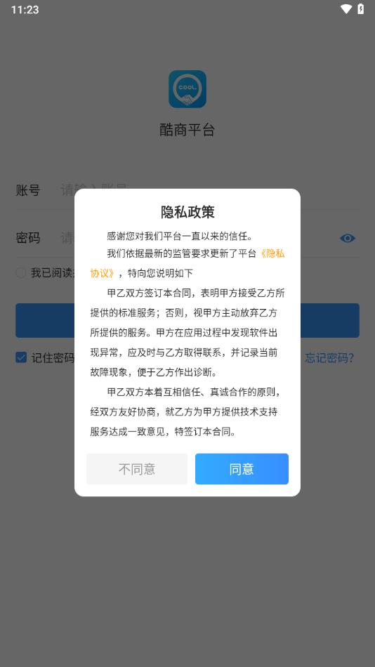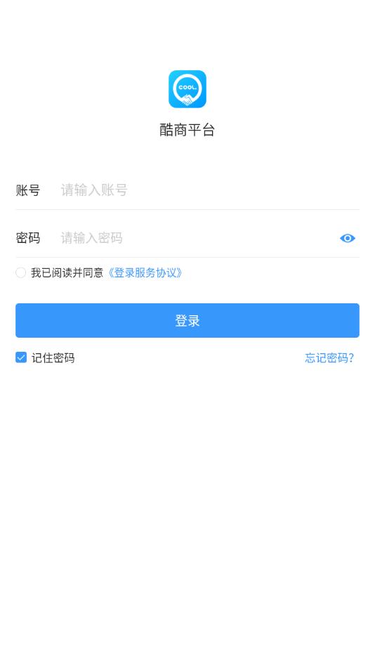 酷商平台无法自主注册,账号密码需由后台录入发放。