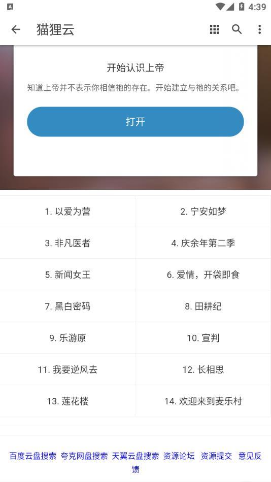 专业的阿里云盘搜索引擎,它提供了快速搜索阿里云盘资源的功能。与阿里云盘相似,猫狸云搜索也支持按文件类型、文件大小、时间和搜索模式进行筛选,功能非常丰富。