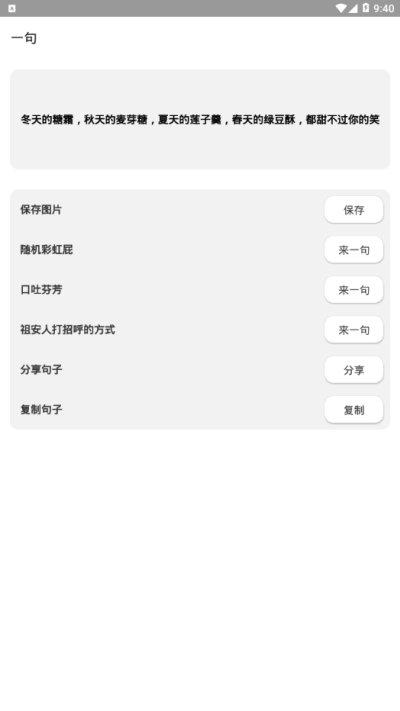 一句彩虹屁(一句)是一个怼人必备的软件一键自动生成怼人的句子,还提供了非常便捷的一键生成功能,还可以生成彩虹屁哦,感兴趣的朋友可以下载。