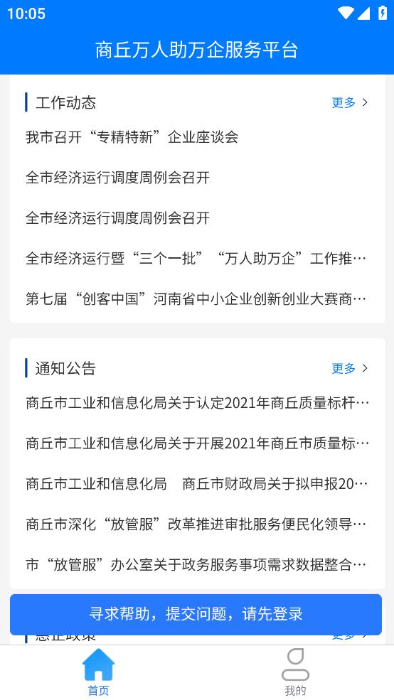 商丘万人助万企app是一款专为企业打造的线上服务平台。企业可以通过软件随时在线获取各种服务帮助,有效助力企业渡过疫情难关,还可以在这里查询各种行业资讯,非常的方便,有需要的快来下载使用吧。