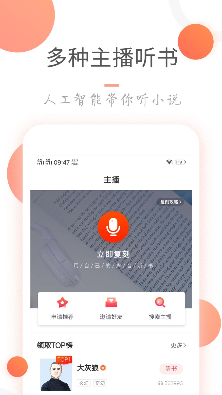 3、风格各异的主播,在你看书劳累时,为你提供优质的听觉盛宴;优美的背景音效果,让你的听书体验更加立体生动