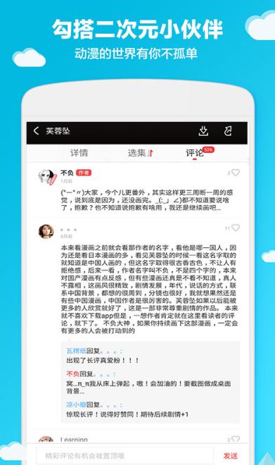 1、通过app,可以参与各种作品的评论讨论,发表你的看法,还可以遇见更多的同好,大家共同交流
