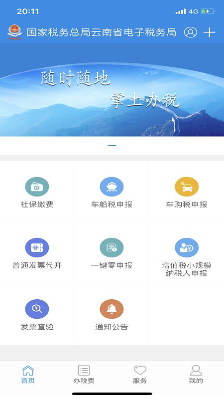 1.打开云南税务App登录账号进入到首页