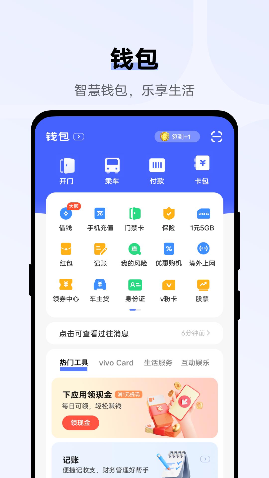 vivo钱包也叫做vivo丰融金融APP,是vivo官方打造的一款生活服务类软件,这里支持各种操作,支持在vivo手机钱包中点击添加门禁卡、交通卡、银行卡、会员卡等,包括酒店的智能房卡也是可以添加的,所有的实体卡片一键添加到APP中,从此让您出行更加便捷,快下载吧!