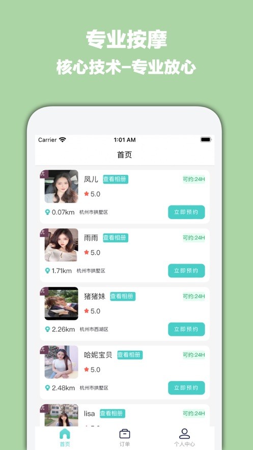 2.识别后,平台将统一展示在会员区,方便会员快速找到好的按摩技师。