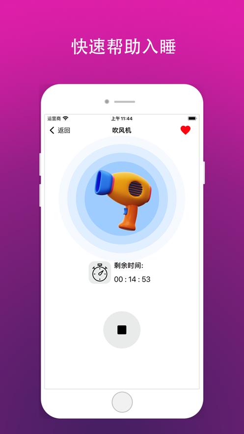 吹风机声是一款为用户们推出的白噪音声音,帮助用户们在这里可以进行白噪音催眠的服务,是针对有睡眠障碍的用户们推出的,让用户们可以在这里进行睡眠辅助,帮助用户们能够更好的入睡,这里除了吹风机的声音还有各种白噪音为用户们提供,使用起来的话是非常的方便的,可以满足用户们的不同的使用需求,感兴趣的话就快来这里下载吧!