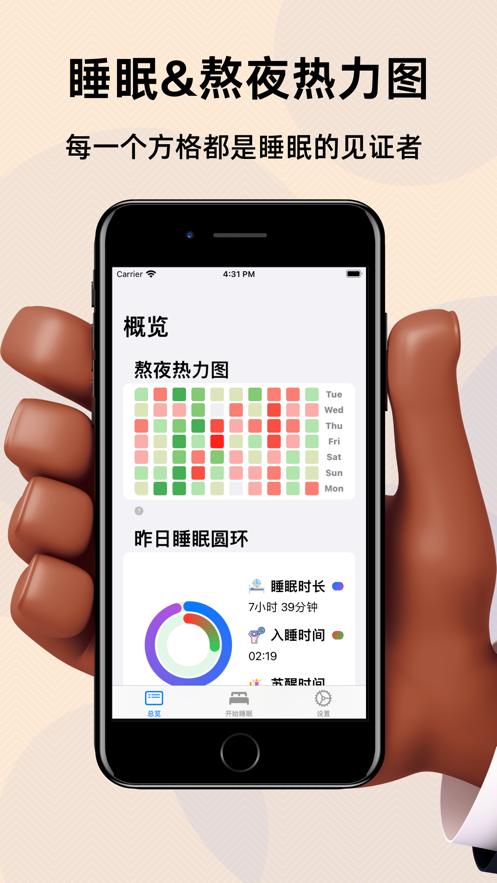 1、这是一个可以帮助你记录睡眠和熬夜统计数据的应用程序。