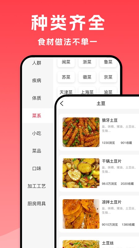 3、海量食材轻松学习,不同的烹饪方式完全掌握,小白也能做菜。
