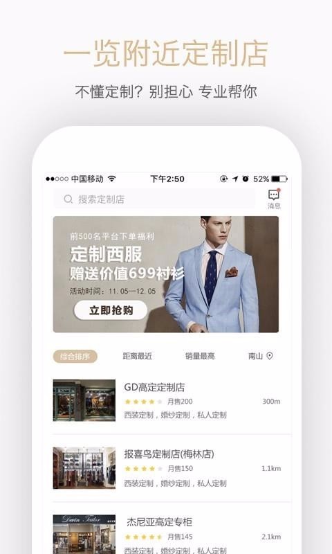 可以在app中快速的查看附近的订制门店,这样用户就能更轻松的知道门店的位置信息;
