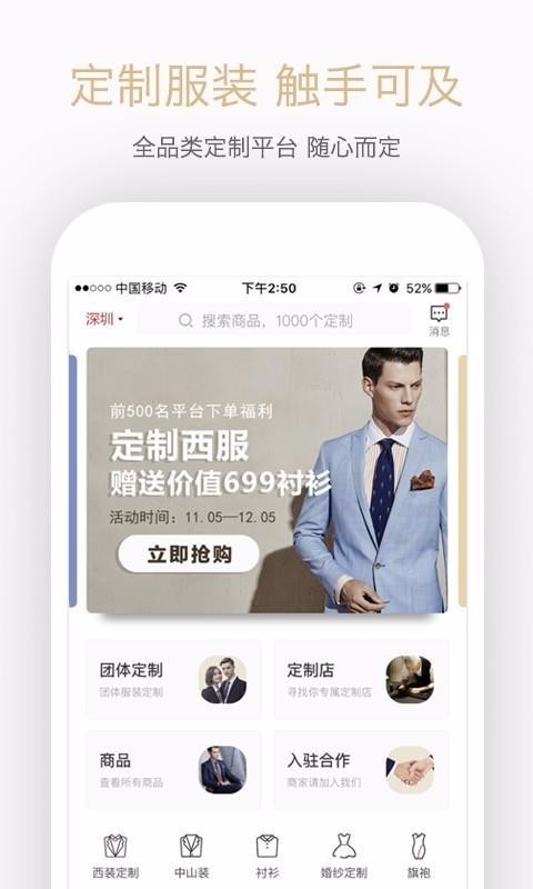 发现平台提供的各种服装订制活动以后,用户就能更快速的参与抢购;