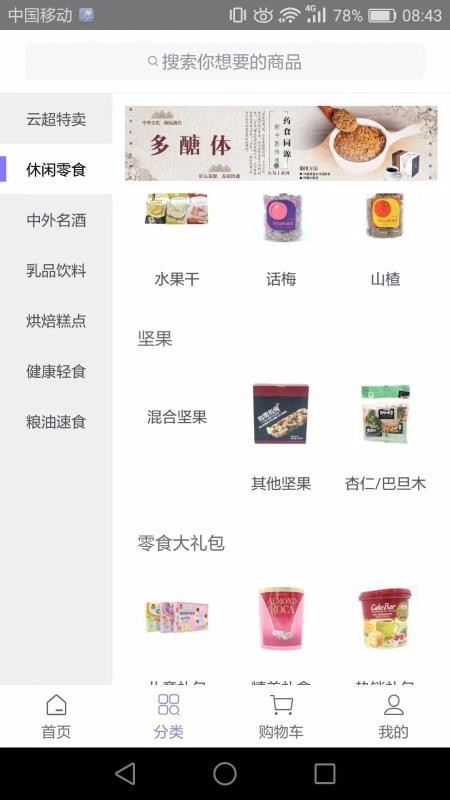 系统按照种类分类商品,可以自由选择分类挑选商品;