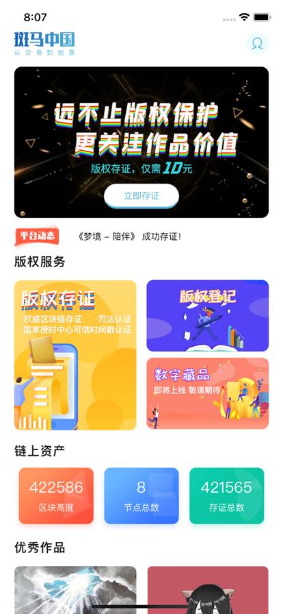 斑马版权数字藏品是一款很专业的购买数字藏品的软件,在斑马版权数字藏品帮助用户更好的进行藏品版权认证,在这里实时的进行查看,用户还可以在线进行数字艺术藏品版权登记,超多优质的数字艺术藏品在这里都是可以查看的,各类型的艺术藏品在这里任你选择,用户可以放心的进行数字艺术藏品交易,随时可以在线进行藏品交易,更好的在线进行查看,打造专业的服务,感兴趣的用户可以下载体验