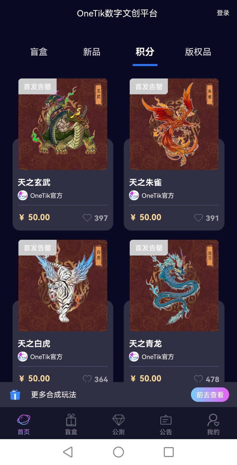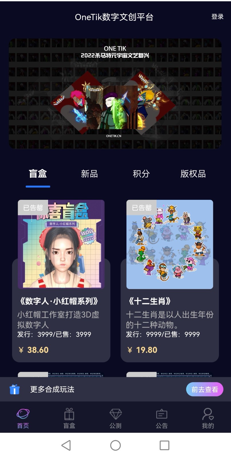 1、在OneTik数字文创平台了解各类不同的藏品,为你提供最详细的信息介绍