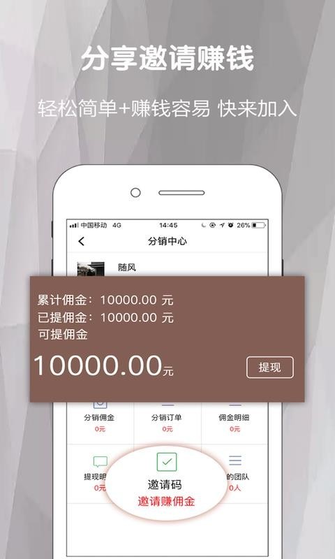 邀请即可赚钱,每个人可以通过邀请好友注册的方式赚到高额的佣金奖励;