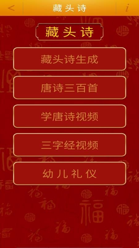 输入姓名就可以制作出姓名藏头诗,输入祝福语即刻制作出祝福藏头诗,随时随地都能使用,非常方便,同时还能将制作完成的藏头诗一键分享转发到朋友圈,分享给好友;除了藏头诗制作功能以外,同时还拥有唐诗三百首、三字经、学唐诗视频、幼儿礼仪等内容,对这方面感兴趣的朋友现在就来下载这款藏头诗制作app手机版使用吧。