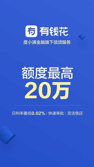 3、想用钱随时借款,提前还款无违约金,用钱,就找有钱花。百度旗下信贷服务,方便、快捷、安心的信贷服务之选。