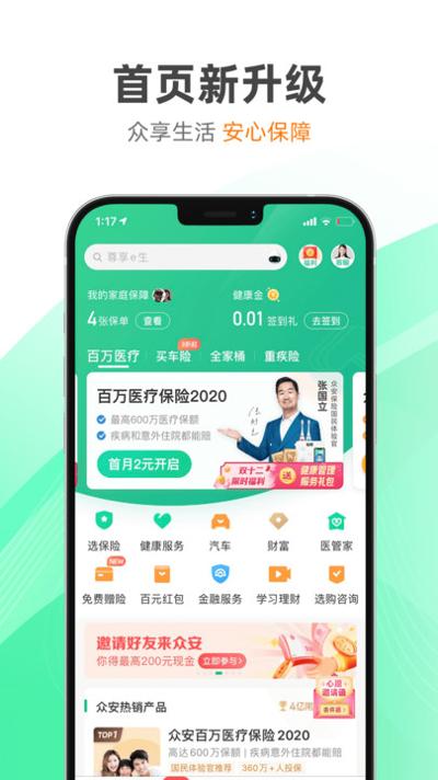 众安保险app是一款集保险和理财于一体的手机软件。是第一家互联网保险公司,可以投保,提供理财服务。非常方便,一站式保险理财,让家人出行无忧,财富稳步上升。快来下载使用吧!!!