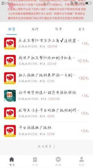 1、互帮忙悬赏app分享给大家,这是一款非常好用的手机兼职赚钱软件!平台里面的任务资源更是超级丰富,每天都会为大家更新新的任务资源,所有任务都是免费的;