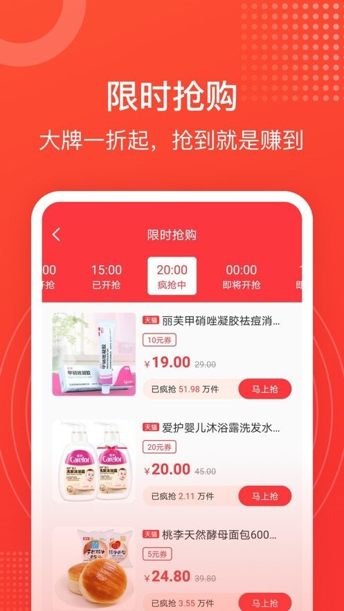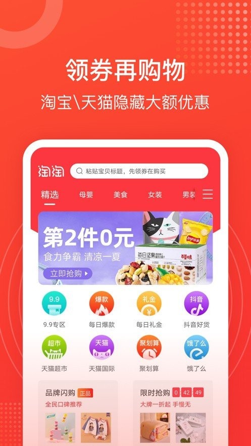 品牌好物低价抢购,提供淘宝、京东等电商购物优惠券,还会有限时秒杀活动。