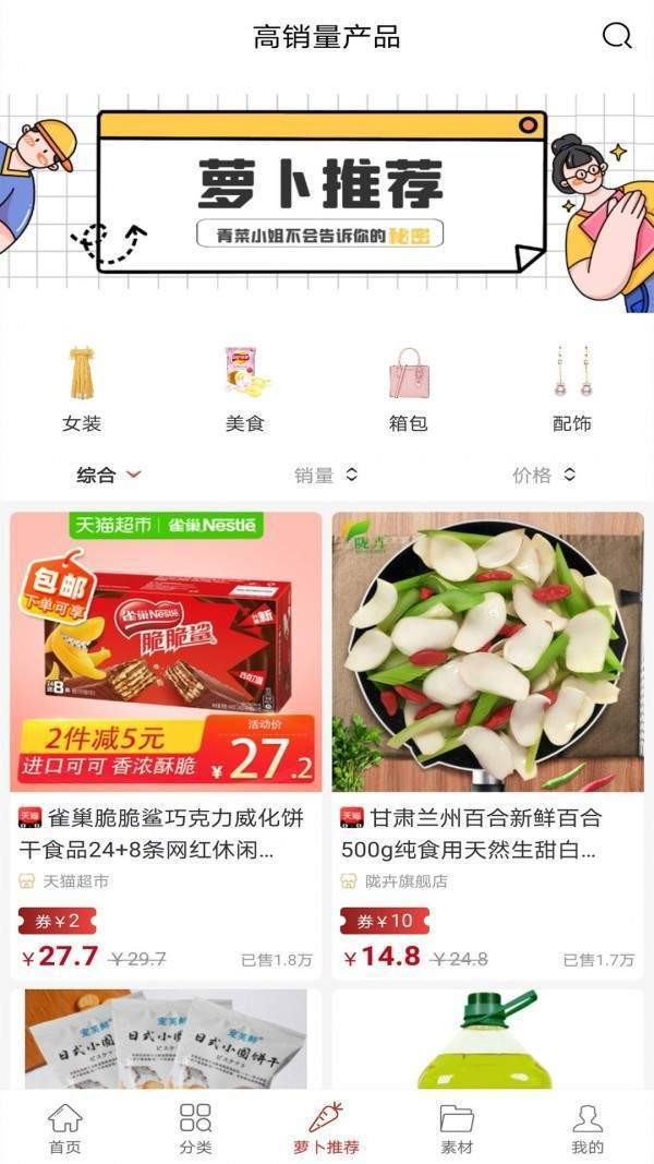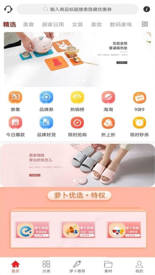 萝卜优选APP是一款领劵购物的手机商城。为用户提供了丰富的商品,分享详细齐全。每日为你推荐最热门的商品,消费者可以快速在分类中找到自己需要的商品。海量优惠券在线发放,同时下单之前领取的优惠劵会自动无门槛抵现,帮助你省下一大笔钱,觉得还不错的小伙伴欢迎下载!