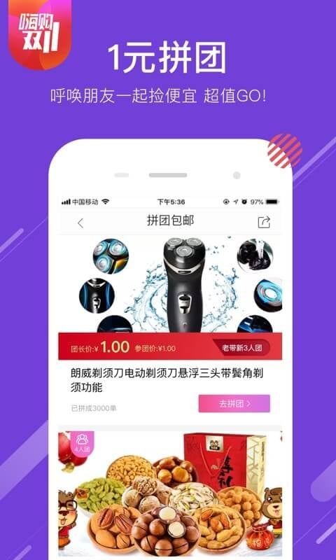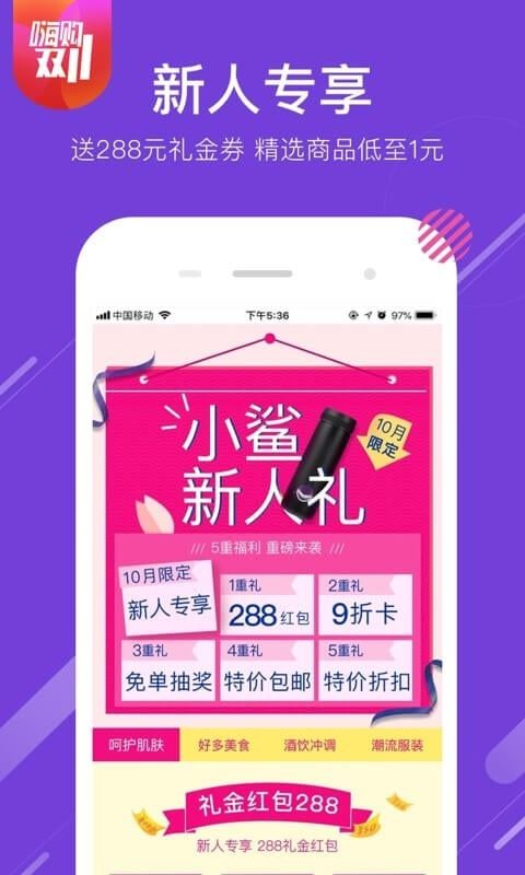 4、 新人福利升级:APP新人专享 “1元”好物包邮送到家