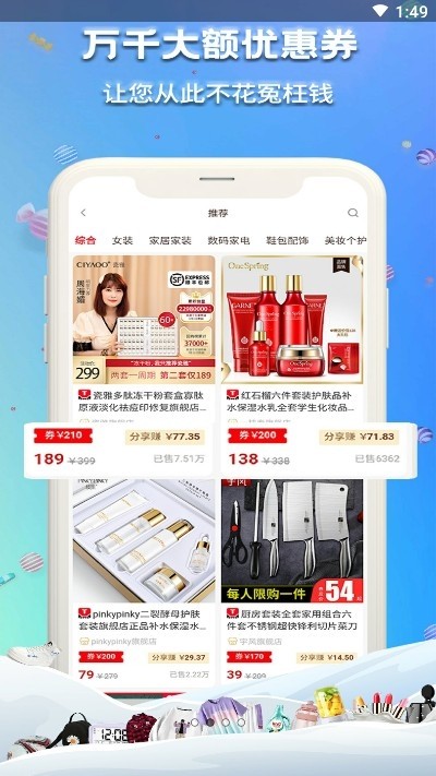 一券齐全是一款非常好用的手机线上购物软件,让用户们能够轻松的在这里购买各种商品,海量的商品种类,满足用户们不同的购物需求,还有超多的优惠券提供,让你领钱购买更加的放心,快来这里下载使用吧!