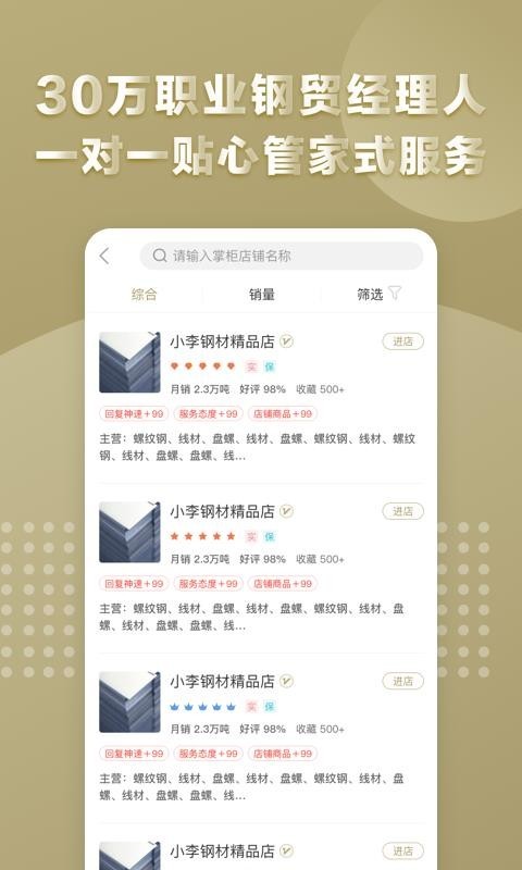 进入现货超市的话可以找到海量的钢铁现货,可以直接在此购买钢铁现货;在线可以随时发布自己需要钢铁的求购信息,钢铁的供应商自然会找上门;能够在此发现大量的钢铁店铺,用户可以进入任意店铺而选购店铺内的商品。