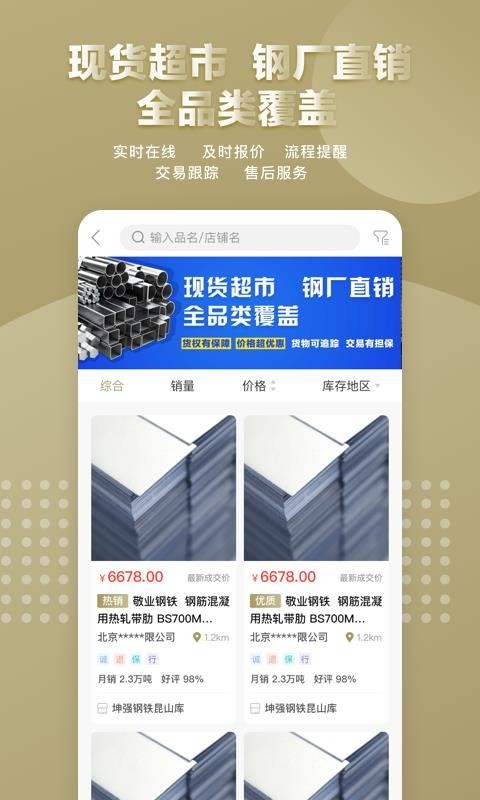 钢来钢往app是一款钢铁买卖app,具备钢铁需求的人可以在这里寻找钢铁货源,因为这里的钢铁种类齐全,当用户需要购买货物的时候可以直接根据销量、价格合适库存地区筛选钢铁,找到满意的钢铁资源之后可以在此一键询价,掌握价格之后即可在线下单付款,这个钢铁交易app可以给予用户超快的物流配送服务,在自己具备紧急需求的情况下可以及时送货上门,这样就能轻松解决自己的问题。