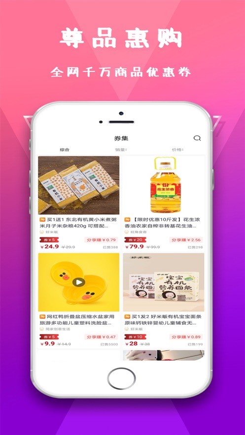 为提升用户购物体验,每天都会有各种购物活动供大家体验,是我们追求的目标。在尊品惠购里面您可以找到海量优质的商品,保证每天都会有新款商品上线供大家选购,超多的种类,您想买的商品,在这里都可以轻松购买,淘宝天猫优惠券一键搜索领取,而且也还有相当大额的优惠券可以领取。优质的是生活很简答,购物省钱从此刻开始。