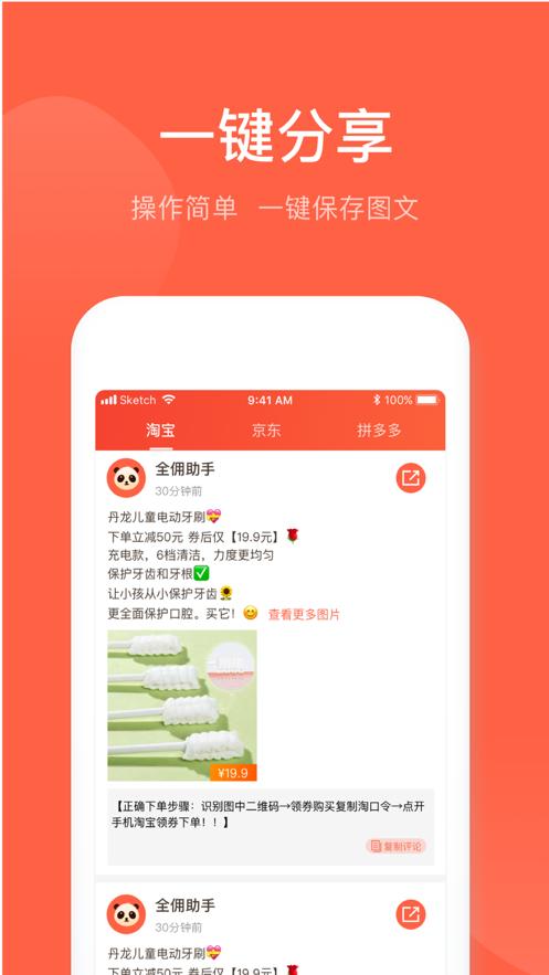 熊猫淘淘app,整合全网实用商品,不断给大家的生活带来更多便利和实惠,是一个十分实用的社交购物软件。通过熊猫淘淘app,你可以领取到各个平台的内部购物优惠券,还可以一键分享赚取佣金,快来试试吧!