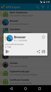 ApkExport是一款能够提取安卓手机应用APK的软件,用户能够在该应用中看到已安装软件的表单,点击目标应用即可开始提取。应用还能够把APK快速分享到社交媒体中,赶紧下载试试吧!