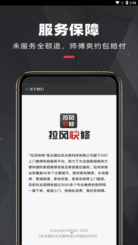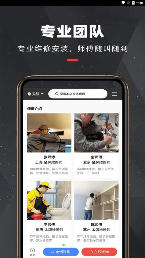 2、免费预约,现场维护:覆盖全国2200多个城市,用户在应用程序上进行预约,附近的大师也可以快速访问;
