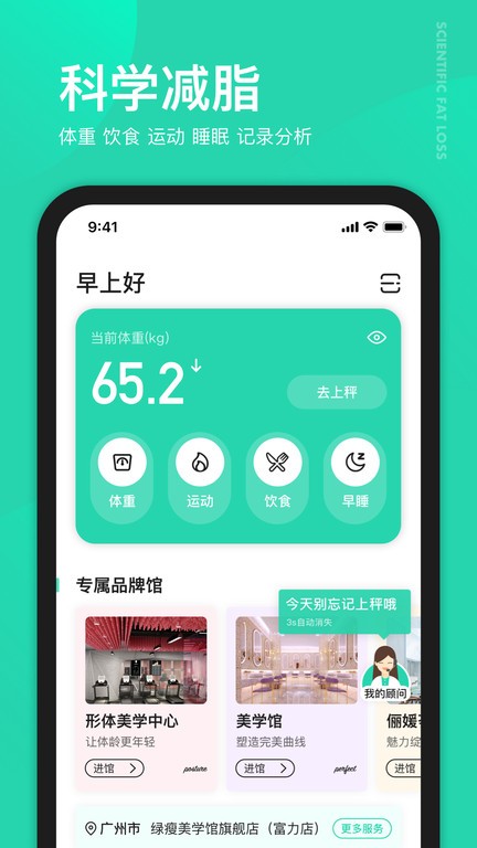1.科学减脂功能,体重,饮食,运动,睡眠,记录分析