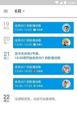 3.在这里进行训练记录的整理,给大家带来清晰的数据,上面有很多的信息管理,可以在这里进行约课