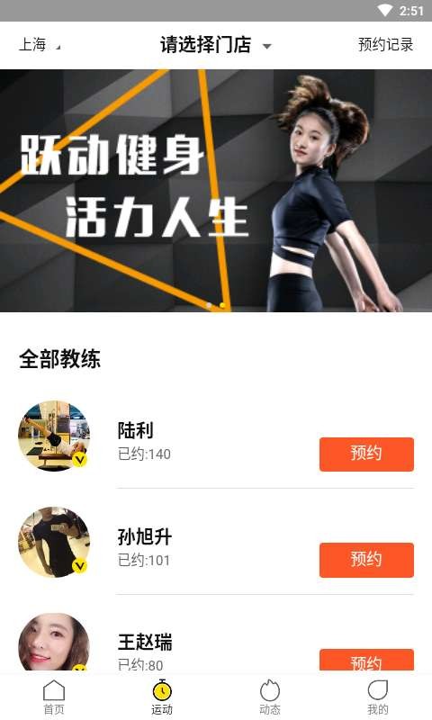 3.非常方便的就能搜索到附近的健身门店,课程预约、提高身体素质。包括预约教练,如减肥塑形