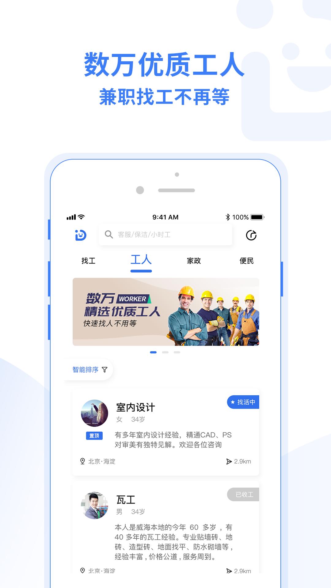 新手注册即享红包奖赏,最大奖赏可达上百元;人工服务审核找工信息内容,确保信息内容真正靠谱,放心接工;诸多高品质工人老师傅正在找份工作,让你专业服务;四种信息内容一键公布,求职、招聘需求统统予以满足。