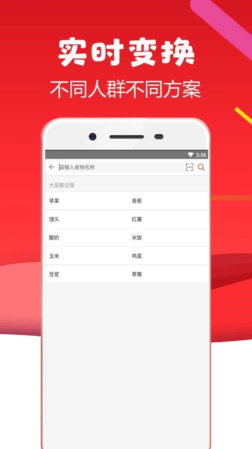 3、用户通过减肥食谱app,可以一键查看食物的热量,对比各项饮食,选择出更健康的食物