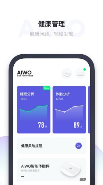 爱我app是一款专注于健康管理的软件。使用爱我app,只需要相应的智能终端相连接,就能非常便捷的检测你的身体健康数据,体脂检测、睡眠报告等数据应有尽有,轻松呵护你的健康。