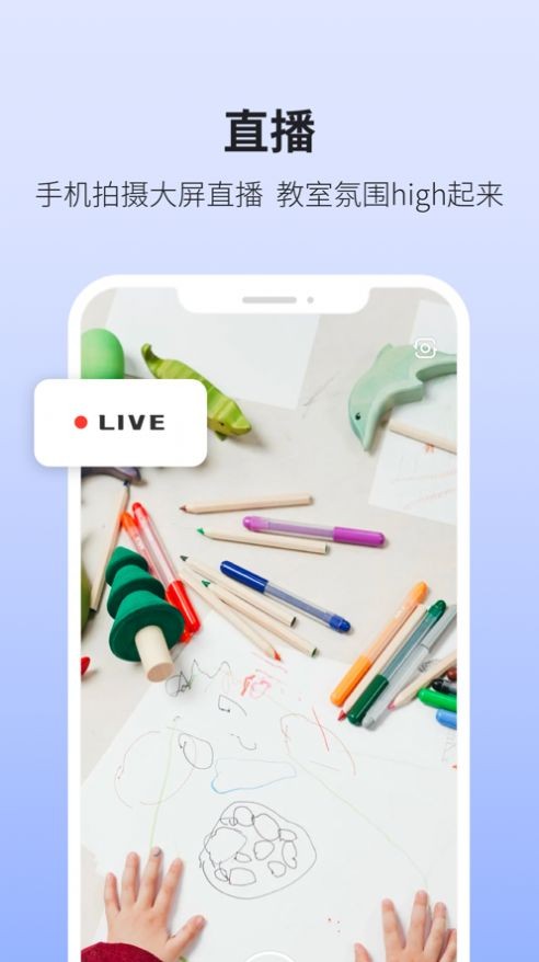 2、手机摄像头画面会实时直播到电脑上,随时掌握动态,轻松互动进行教学。