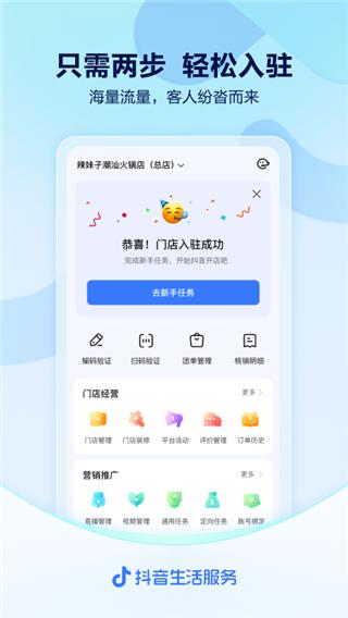 1、抖音来客让商家可以更好的提升自己的店铺管理效率,放心的进行使用
