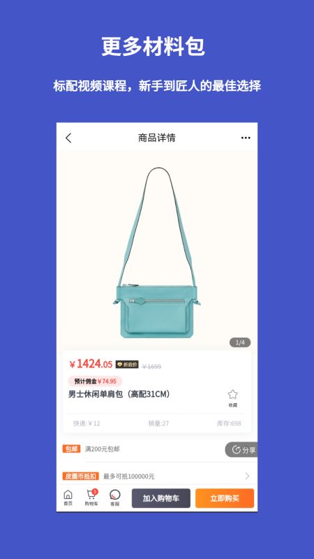 皮圈商城用户可以将想要购买的商品加入购物车,方便进行统一结算。可以对购买的商品进行评价和反馈,同时也可以查看其他用户的评价和意见。