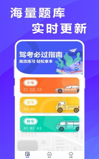 科目一、科目四全真题库整理解析,大家在这里每天都可以随时学习,严格遵循驾驶考试步骤,新增多城市小车新规地方题库!海量的驾考题库为你提供,实时更新,与网点同步,全国驾校、教练、司机、学员倾情举荐的驾驶员在线培训系统软件!全真理论培训题库,是您快速拿本的必备神器!