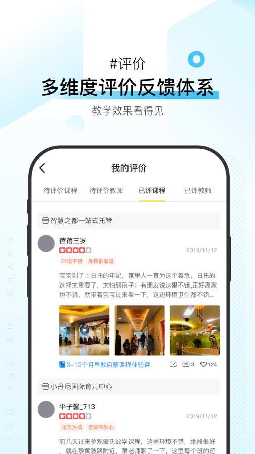 1、优学至上app严选优质的教育机构,家长可以清楚地查询到各个机构的详细信息和课程情况。选择更放心的早教机构