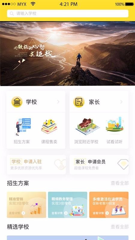 推荐精选招生方案,如果以学校身份入驻的时候则可以在此获得专人设计好的招生方案;