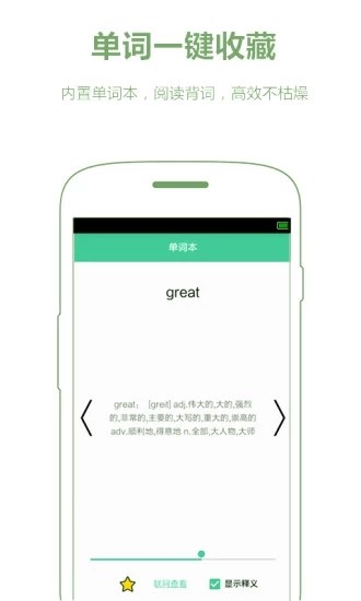 1、app内置英语词典,让用户可以离线查单词,轻轻一点即可,无需再次输入