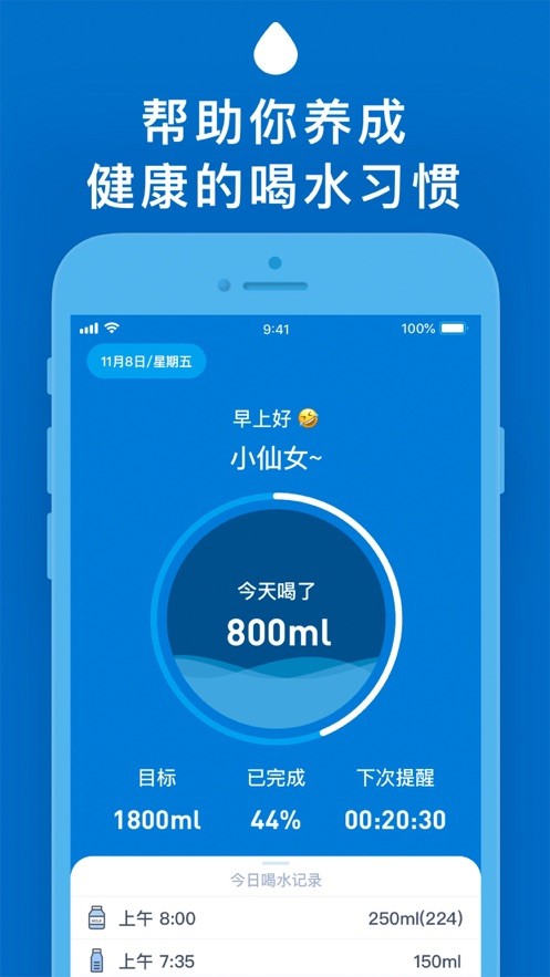 3.能够自定义喝水时间的定时,帮助你能够按时喝水;