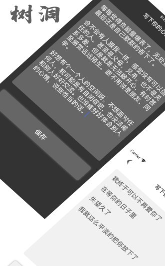 是一款能够帮助用户们倾诉情绪的软件,当您遇到感情,挫折,却没人可以倾诉时,就可以来这里招人倾诉,平台非常的友善,不会攻击用户们,在这个树洞里,倾诉你的难处,而且也没有什么可担心的,反正谁也不认识谁,随时可以去互动交流,还能发布表情包和图片。