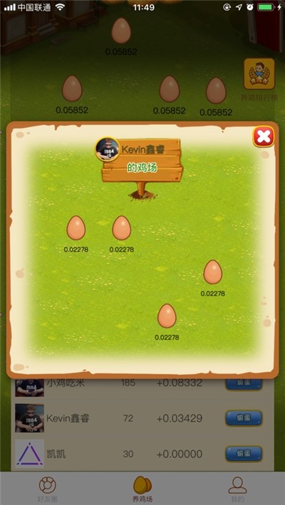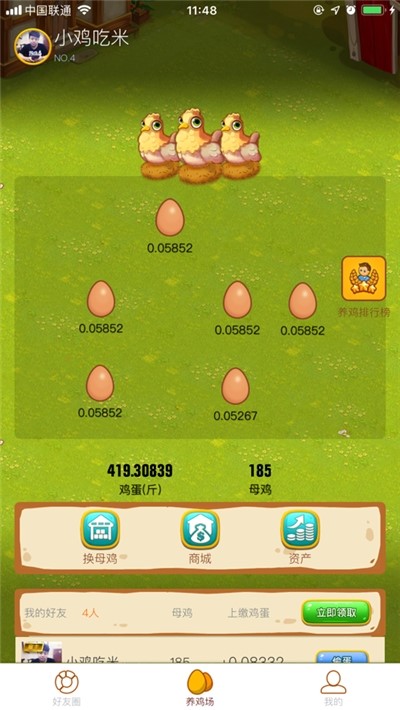 2.每天登录在线喂养小鸡,产出的鸡蛋可以进行收取,鸡蛋能孵小鸡;